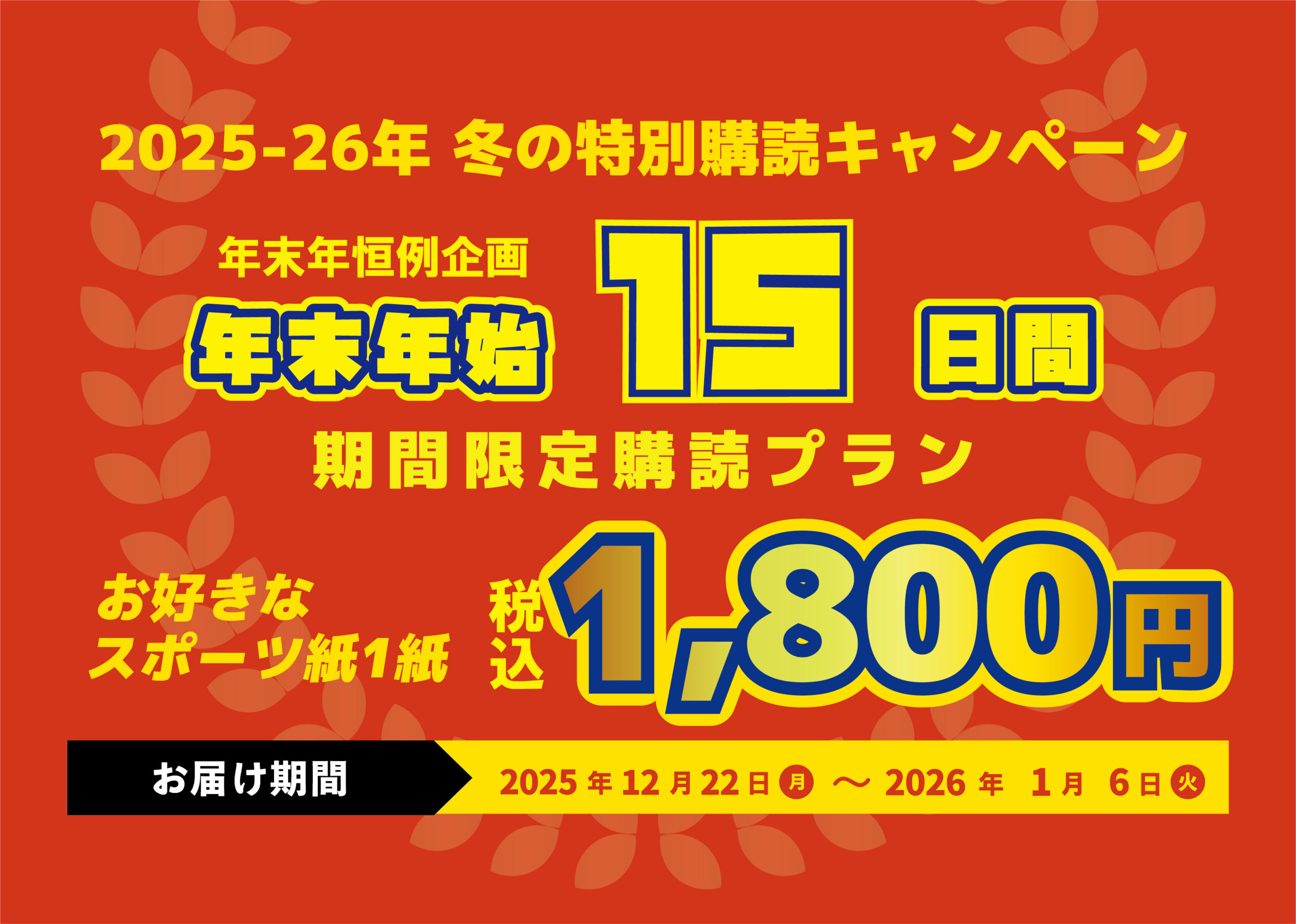 年末年始15日間限定スポーツ紙購読プランのご案内